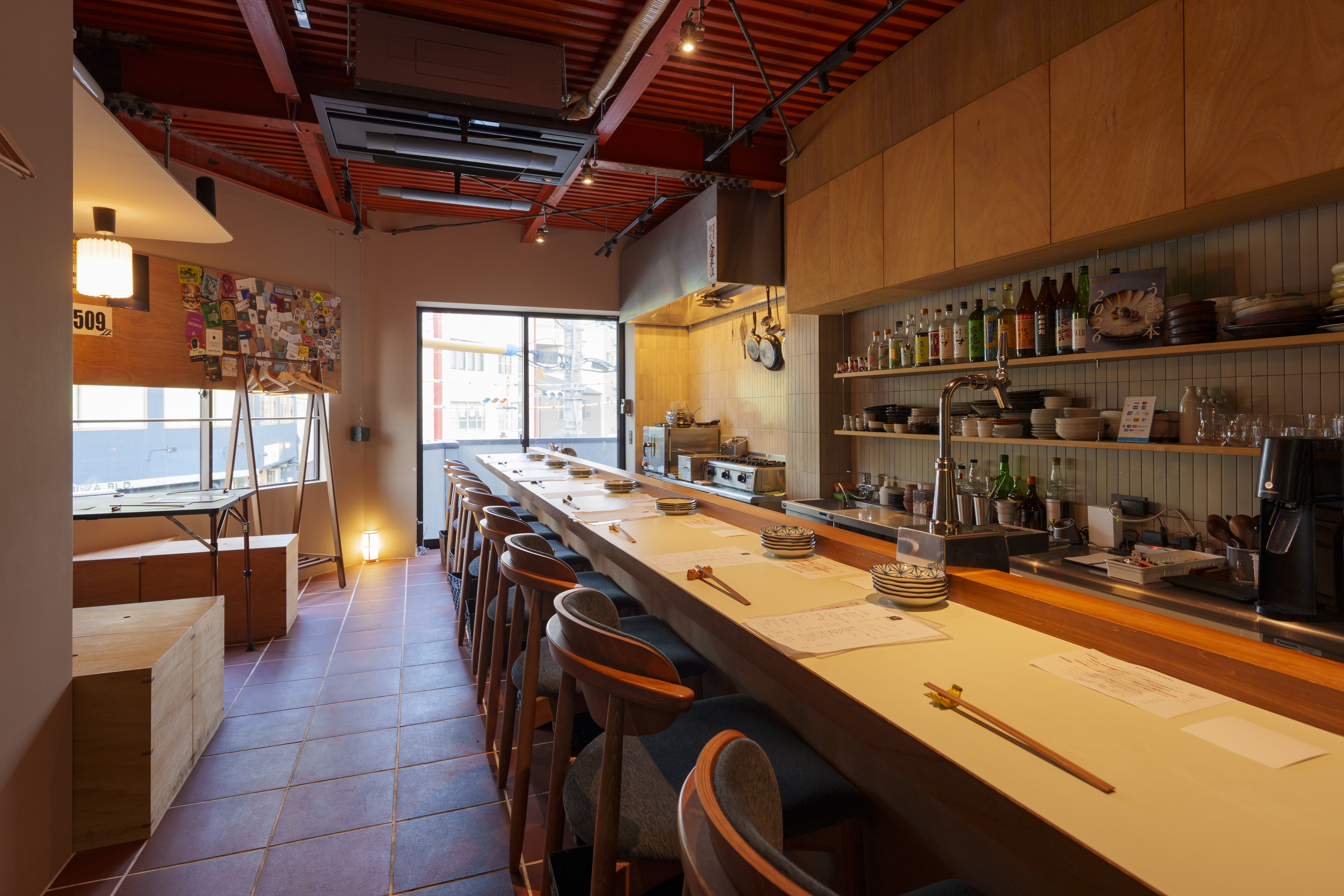 また、当店は後院通に面しており、大きな窓から日中はやわらかな自然光が店内に差し込みます。夜になると昼間とはまた違った落ち着いた雰囲気に変わり、ゆったりとした時間をお過ごしいただけます。